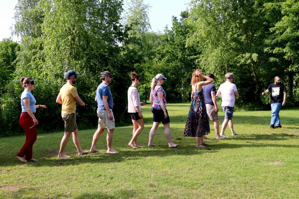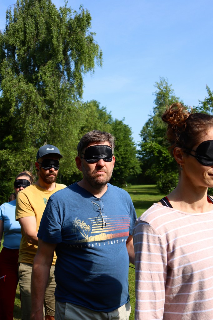 Another aspect of the exercise is about connecting with the group as we will exchange roles throughout the walk (leader, side guard, or blind). It is about trusting and taking care of one another.