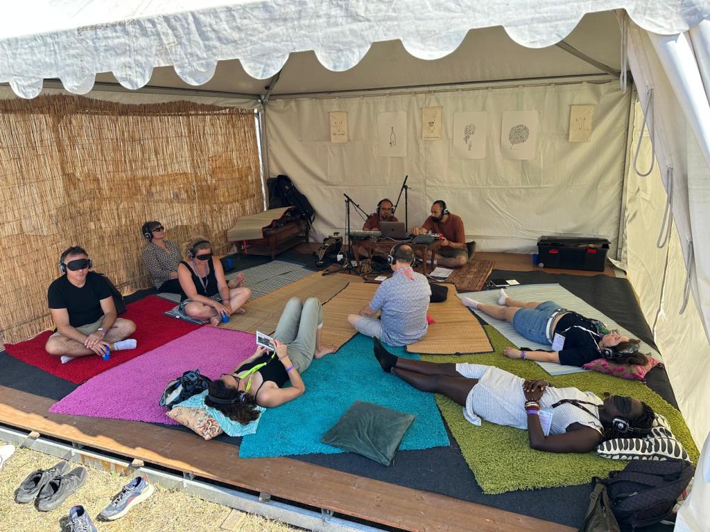 It can be described as inner world tourism—a guided, yet free, exploration into the landscapes of the psyche. Through the poetic fusion of storytelling, soundscapes, and music, an environment is created in which an inner journey naturally unfolds. This serves as a portal into a dimension where inner content can be consciously observed, supported by a delicate arrangement of cognitive and archetypal elements and patterns.